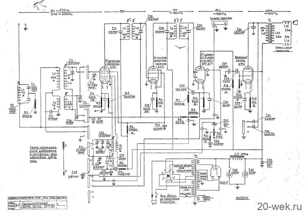 Радиоприёмник сетевой ламповый *5НС-20* с 1940 года выпускал Воронежский завод *Электросигнал*. *5НС-20* — это (5-ламповый, Настольный, Сетевой, 20-я разработка) радиоприёмник предназначеный для приёма местных и (или) дальних радиовещательных станций в диапазоне средних 187,5… 576 м (1600…520 кГц) и длинных волн 725…2000 м (415…150 кГц). В радиоприёмнике установлен электродинамический громкоговоритель. Выходная неискаженная мощность приёмника 1,5, наибольшая 4 ватта (искажения). Приёмник работает на металлических лампах: 6А8, 6К.7, 6Г7, 6Ф6 и 5Ц4 (или 5Ц4С). Мощность потребляемая от сети около 60 Вт. Радиоприёмник работает от сети переменного тока 110, 127 или 220 вольт.
