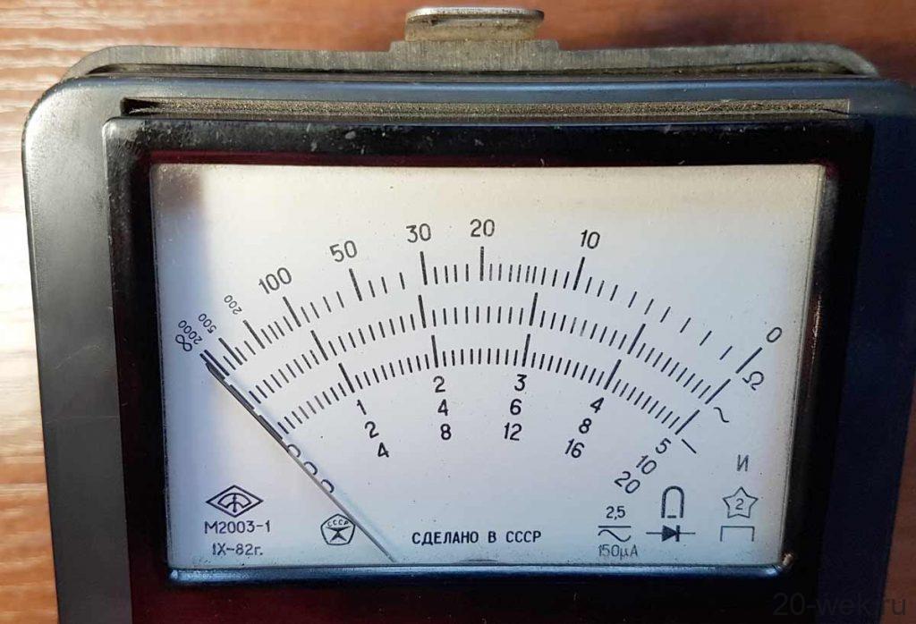 Комбинированный измерительный прибор *АВО-63* (Школьный) выпускался с начала 1963 года. Комбинированный измерительный прибор **АВО-63** (Школьный) предназначен для измерения постоянного и переменного напряжения от 0 до 1000 вольт, силы постоянного и переменного тока от 0 до 500 мА, а также сопротивления от 1 Ома до 2 Мом. Переключение режимов измерений ручное, путём вставки фазового щупа в соответствующее гнездо. Имеется переключатель для измерения постоянных или переменных величин и регулятор для выстовления концевой отметки на шкале при измерении сопротивлений. Класс точности прибора 2,5. Питание для работы омметра прибора состоит из 3-х элементов: ФБС-0,25, 1,3-ФМЦ-0,25, 332 или 336. В 1977 году прибор был обновлён, получив футляр из небьющейся пластмассы и новый стрелочный индикатор. Прибор был без крышки как предыдущий, но у него был футляр из железа серого с голубым цвета, с закрывающейся крышкой. Именовался прибор как *АВО-63* (Учебный).