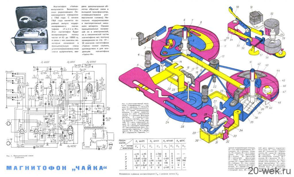 - Магнитофон »Чайка-М» имеет отличия в схеме и конструкции. На ленте типа 2 или СН полоса частот 40…10000 Гц.