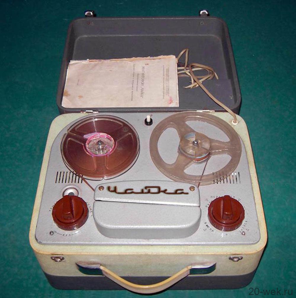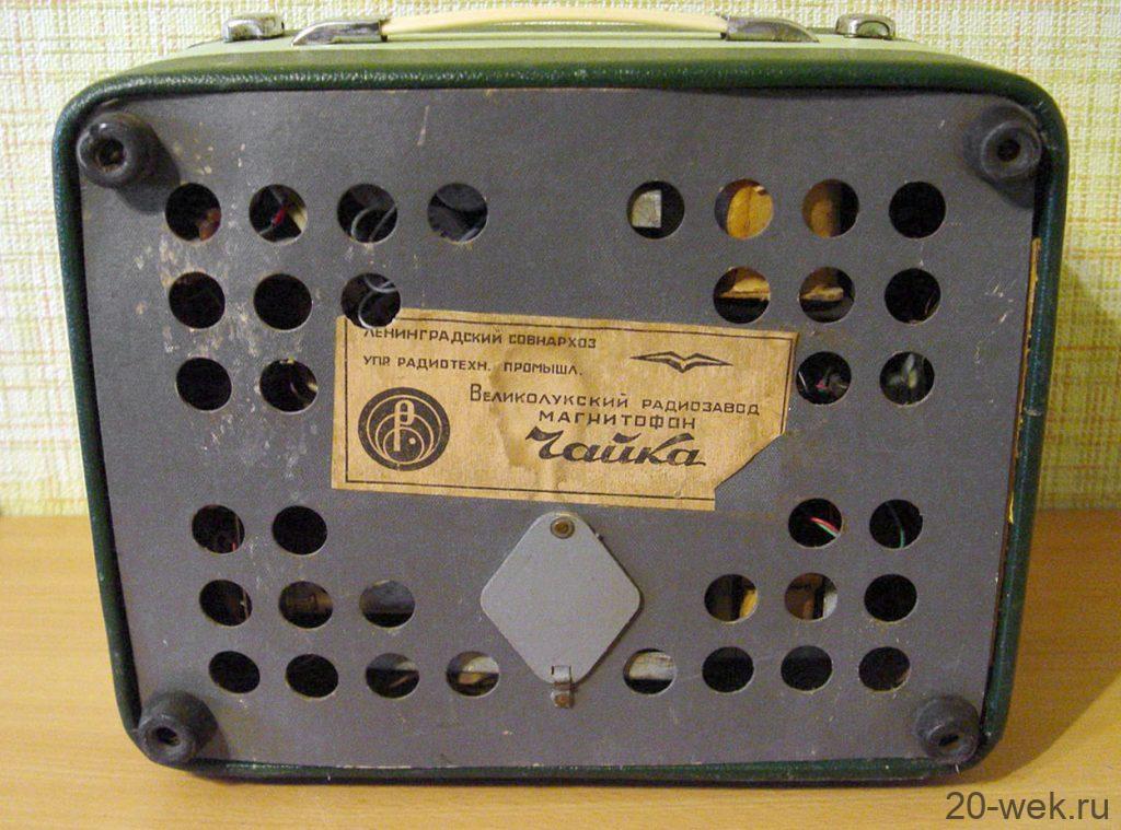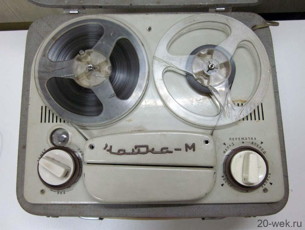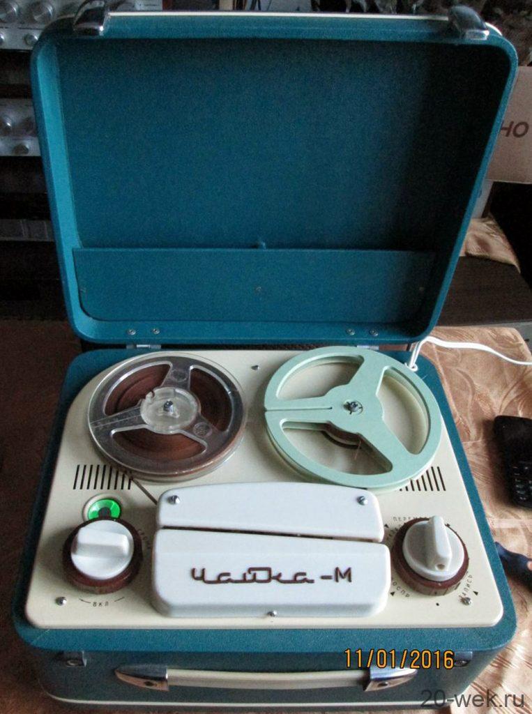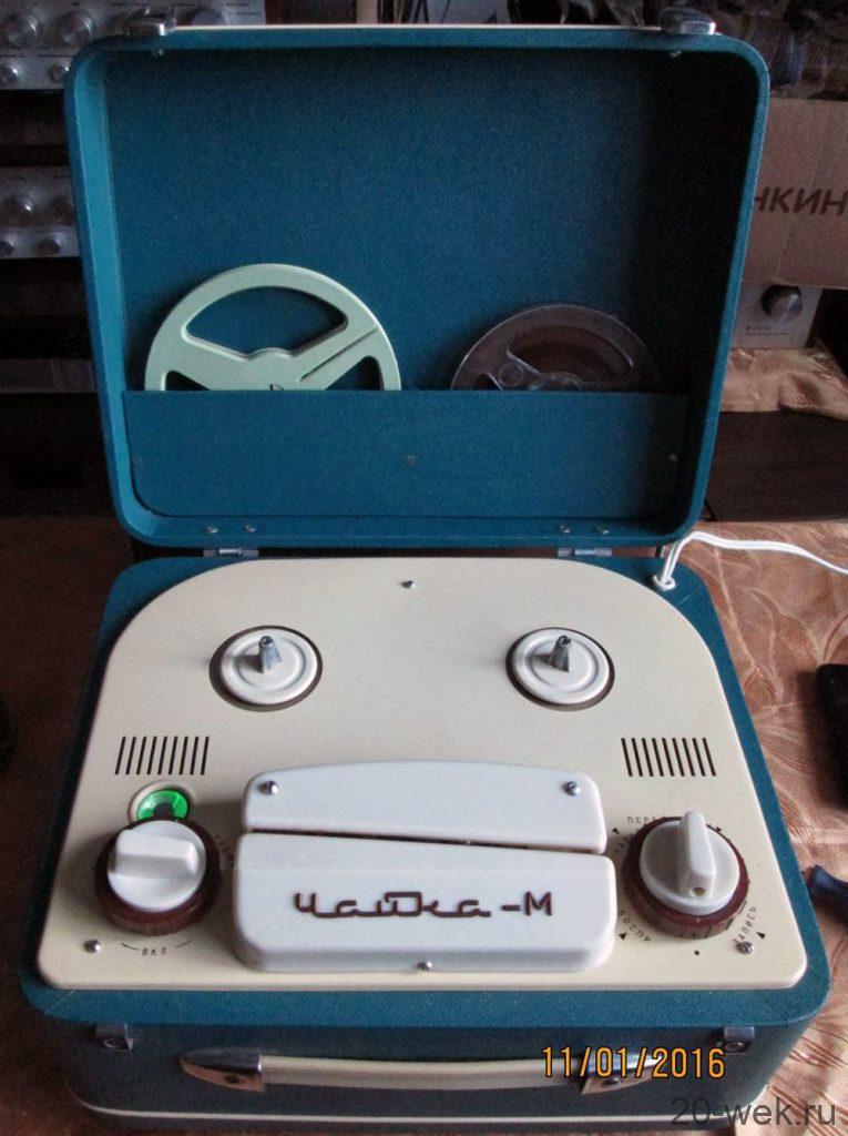 Магнитофоны «Чайка» и «Чайка-М» выпускал с 1960 и 1964 года Великолукский радиозавод. »Чайка» — модернизация модели «Чайка» 1956 года. Он служит для записи и воспроизведения фонограмм. Скорость 9,53 см/сек. Катушки вмещают 240 м. магнитной ленты. Запись 2-х дорожечная, длительность записи 40 мин. При использовании ленты типа 2 или СН полоса рабочих частот 40…6000 Гц. Номинальная выходная мощность 1 Вт. В магнитофоне применены 4 радиолампы. Корпус из гнутой фанеры, облицован синтетическим пластиком.