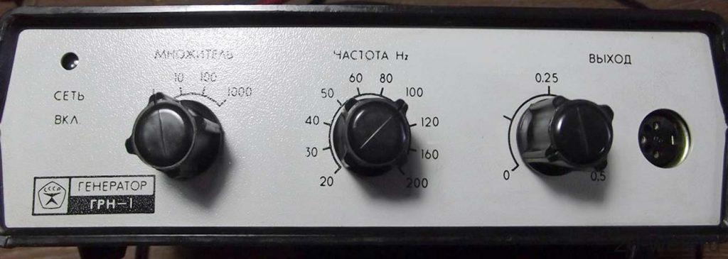 Генератор низкочастотный *ГРН-1* с 1985 года выпускал Вильнюсский завод РИП. Генератор применяется в радиолюбительской практике при настройке низкочастотных устройств. Диапазон генерируемых частот 20 Гц — 200 кГц. Точность установки частоты — 3%. Коээфициент гармоник 3%. Неравномерность АЧХ в полосе частот — 0,8 дБ. Максимальное выходное напряжение при нагрузке 600 Ом — 0,5 В. Питание сеть ~ 220 В.