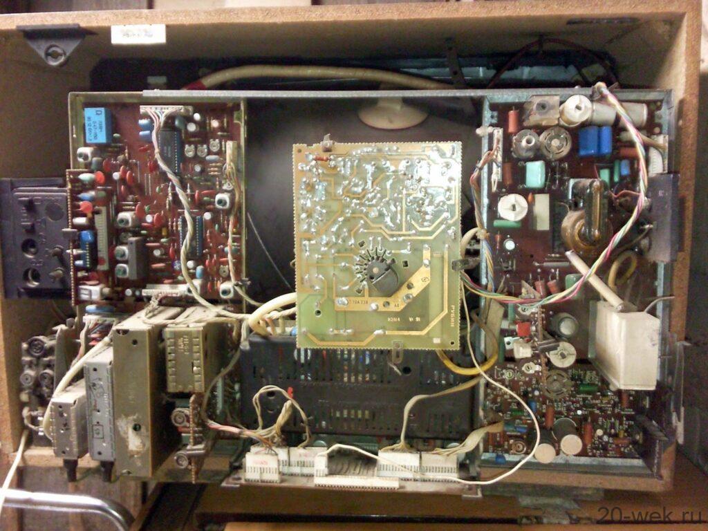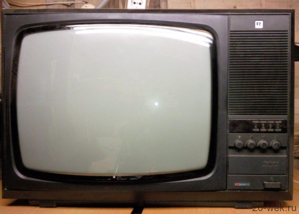 Телевизионный приёмник цветного изображения *Рубин 51/54ТЦ-402* с I-кв 1989 года выпускало Московское ПО *Рубин*. Цветной телевизор **Рубин 51/54ТЦ-402** — стационарный полупроводниково-интегральный модульной конструкции. Телевизор выпускался в 12-ти вариантах, с отечественными и импортными кинескопами размером 51 и 54 см. по диагонали с углом отклонения луча в 90 градусов и самосведением. Телевизор предназначен для приёма телевизионных передач цветного и ч/б изображения в МВ, ДМВ по системам СЕКАМ и ПАЛ. Модель обладает высокой чувствительностью и эффективной схемой АРУ, позволяя вести устойчивый приём. В телевизоре установлено устройство сопряжения с видеомагнитофоном, 8-ми программное устройство выбора программ с цифровой индикацией. В некоторых вариантах такой индикатор отсутствует. Любой телевизор обеспечивает автоматический выбор стандартов и системы цветного телевидения; автоматическое поддержание баланса белого цвета; подключение магнитофона для записи звукового сопровождения передачи; прослушивание его на головные телефоны; подключение видеомагнитофона для записи передач и воспроизведения видеозаписи. Модели выпускались в настольном оформлении. Чувствительность канала изображения, ограниченная синхронизацией в МВ диапазоне 40, в ДМВ 70 мкВ. Разрешающая способность в центре 350 линий. Номинальная выходная мощность канала звука 1 Вт. Диапазон воспроизводимых частот по звуковому давлению 100…10000 Гц. Потребляемая мощность 80 Вт. Габариты телевизора с экраном диагональю 51 см 453x643x482 мм, 54 см 453x643x473 мм. Вес телевизора 29 кг.