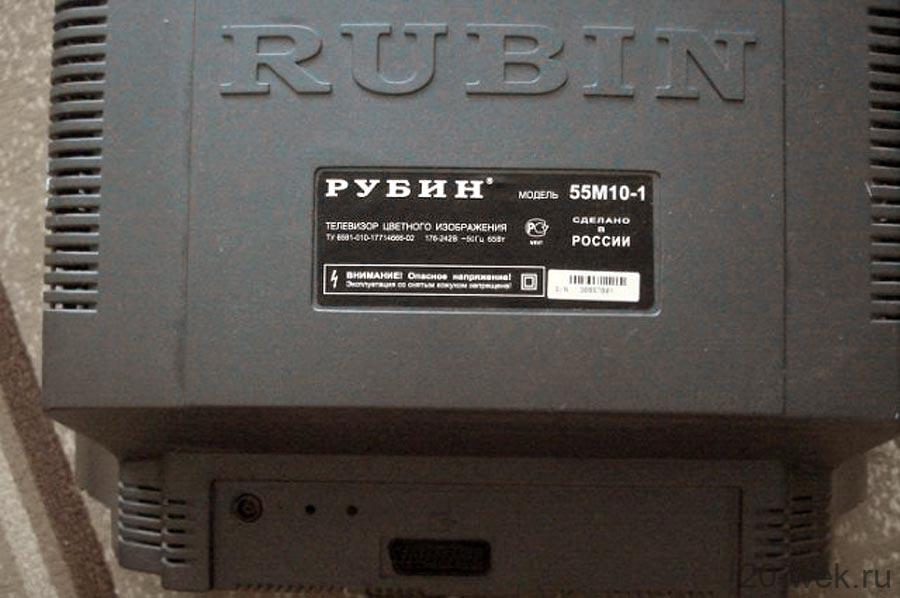 Телевизионный приёмник цветного изображения *Рубин-55-М10-1* с 2000 года выпускал Воронежский завод *Видеофон*. Вседиапазонный и всесистемный цветной телевизор с ЭЛТ кинескопом диагональю 54 см. Количество запоминаемых каналов — 60. Форматы входного сигнала 480i, 576i. Номинальная выходная мощность 2х10 Вт. По низкой частоте звук ТВ стереофонический. Система автоматического выравнивания громкости (AVL). Входы AV, S-Video, SCART, RGB. Имеется таймер сна и защита от детей. Имеется несколько телевизионных игр, будильник. Потребляемая мощность 40 Вт. Цвет ТВ — серебристый. Габариты модели 586х445х481 мм. Масса 21 кг. Телевизор выпускался до 2010 года.