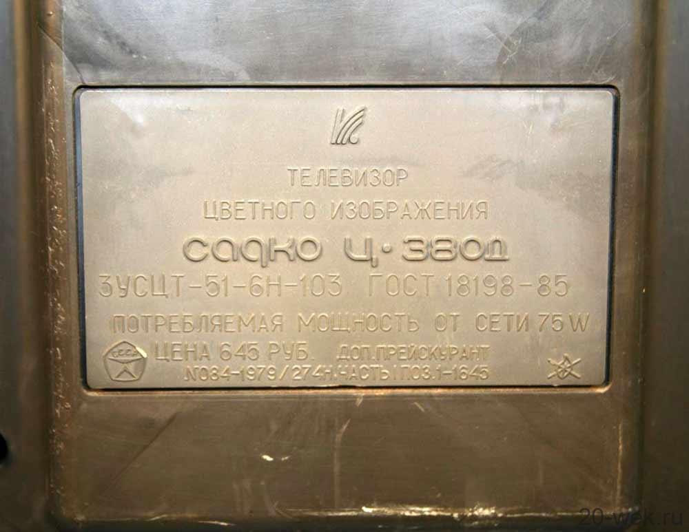 Цветной телевизор *Садко Ц-380Д* с I-кв 1986 года выпускал Новгородский завод *Квант*. Унифицированный полупроводниково-интегральный телевизор цветного изображения предназначен для приёма программ телевидения в диапазонах МВ и ДМВ. В ТВ имеется ряд автоматических регулировок обеспечивающих качественное изображение. Выбор одной из 8-ми программ осуществляется сенсорным переключателем. В ТВ применён импульсный блок питания и новая элементная база, позволившие уменьшить габариты, массу и потребляемую мощность, увеличить надежность. В ТВ применены кинескоп типа 51ЛК2Ц с углом отклонения лучей 90°, с самосведением, сенсорный переключатель ТВ программ, селекторы СК-М-24 и СК-Д-24, индикация включенного канала, разъёмы магнитофона на запись звукового сопровождения, видеомагнитофона при установке модуля сопряжения, прослушивания звука на головные телефоны, диагноз-тестера для контроля модулей. Размер изображения 303х404 мм. Диапазон воспроизводимых частот 100…10000 Гц. Чувствительность в МВ диапазоне — 55, ДМВ — 90 мкВ. Номинальная выходная мощность 1 Вт. Потребляемая от электрической сети мощность не превышает 75 Вт. Габариты телевизора — 645 х 450 х 480 мм. Масса 30 кг.