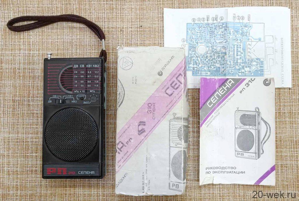 Портативный радиоприёмник *Селена РП-310* выпускался с 1994 года Минским НПК *Сигнал*. Приёмник предназначен для приёма радиовещательных станций в диапазонах ДВ, СВ и КВ-1 (31 м) и КВ-2 (25 м). Приёмник имеет индикатор точной настройки. Чувствительность в диапазонах ДВ 2 мВ/м, СВ 1,5 мВ/м, КВ-1, КВ-2 — 250 мкВ. Селективность 26 дБ. Диапазон воспроизводимых частот 450…3150 Гц. Номинальная выходная мощность 100 мВт. Питание 3 элемента 316. Габариты приёмника 155х77х27 мм. Масса 230 гр.