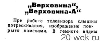 Телевизионный приёмник чёрно-белого изображения *Верховина-А* с 1962 года выпускал Львовский телевизионный завод. Телевизор имеет 16 ламп, 9 п/п диодов, кинескоп 43ЛК2Б и представляет собой модернизированную модель телевизора **Верховина**. Изменения направлены на повышение его эксплуатационной надежности. Размер изображения 270 х 360 мм. Чувствительность в 100 мкВ позволяет вести уверенный приём на наружную антенну передач в радиусе до 70 км от студии. Громкоговорители 1ГД-9 и 2ГД-3, расположенные на передней панели и на боковой стенке обеспечивают громкое звучание. Применение систем АРУ, АРЯ и схемы инерционной синхронизации с АПЧ и Ф упростило обращение с телевизором. Несимметричное расположение экрана, применение пластмассы, в сочетании с деревянным футляром с отделкой ценными породами дерева или имитацией придают телевизору красивый вид. В зависимости от отделки на телевизор установлены две цены. Основные регулировки аппарата выведены на лицевую панель. Вспомогательные находятся сзади. Монтаж элементов на платах печатный. Потребляемая мощность 180 Вт. Габариты ТВ — 570 х 400 х 330 мм. Масса 29 кг. Всего телевизоров **Верховина-А** выпущено ~ 70 тысяч штук.